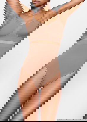 Kim Kardashian first had the idea to launch a shapewear line over a decade ago - it was sparked by the fact that she always found herself cutting, sewing and dying her existing solutions. The result of dedicated fabric testing and development, this thong is part of the 'Core Control' line and is designed to sit undetected beneath clothing. The label's team say it "smooths and tightly contours" your tummy with a supportive, compressive fit. The double waistband and strip of silicone at the back keep it in place.
