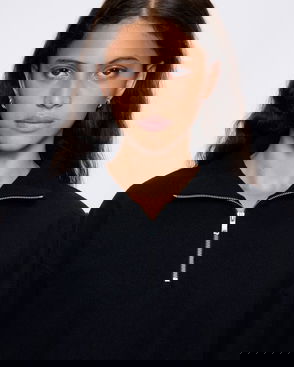 SKIMS' sweater is made from soft cotton-blend jersey with a looped backing, so it's perfect for lounging in. It has a relaxed, slightly cropped shape, a tonal half-zip placket and ribbed trims which enhance the cozy feel.
