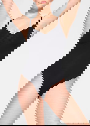 Keep up with SKIMS' 'Everyday Sculpt' line by adding this thong bodysuit to your collection. Blended with plenty of stretch, it offers mid-level compression at the tummy and waist and has piqué stitches for bust definition. The straps are convertible.