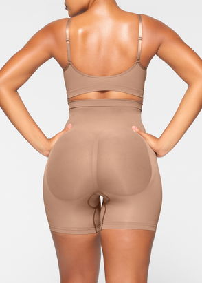 Call off your search for breathable shapewear shorts. Part of SKIMS' 'Everyday Sculpt' collection, this stretchy mid-level compression pair targets the tummy, waist and thighs. Designed with an open gusset, they're detailed with silicone to prevent rolling and butt pockets for lift and definition.