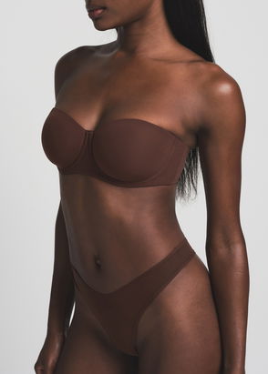 Part of the 'Fits Everybody' collection, SKIMS' strapless bra is made from super soft stretch fabric for a second-skin fit. It provides support with the help of gentle cushioned underwiring that doesn't dig into the skin and has silicone tape along the neckline and sides to keep it in place. The optional straps can be worn multiple ways.