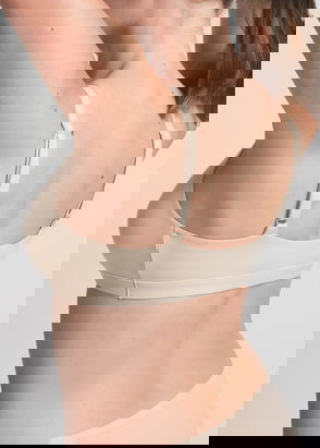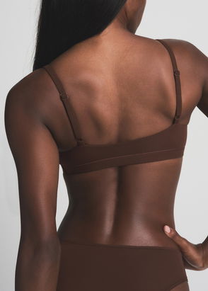 It's made from soft, second-skin fabric that's remarkably thin - the founder says it just molds to you and stays. It has no underwire (so it's even comfortable enough to sleep in) and color-matched hardware at the adjustable shoulder straps.