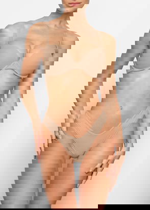 The ultimate stamp of approval, SKIMS founder Kim Kardashian is so often spotted wearing the brand's pieces herself. This bodysuit is cut from sculpting stretch fabric and fitted with push-up padding designed to add one cup size. The thong base prevents any unwanted lines.