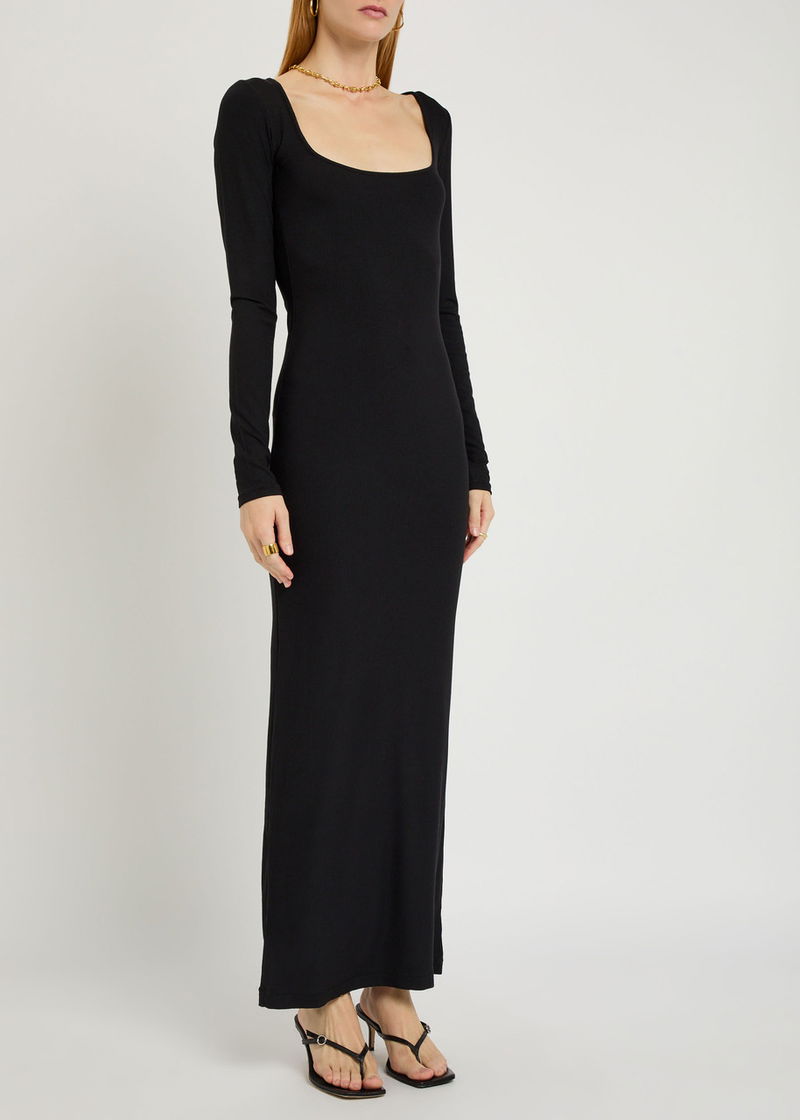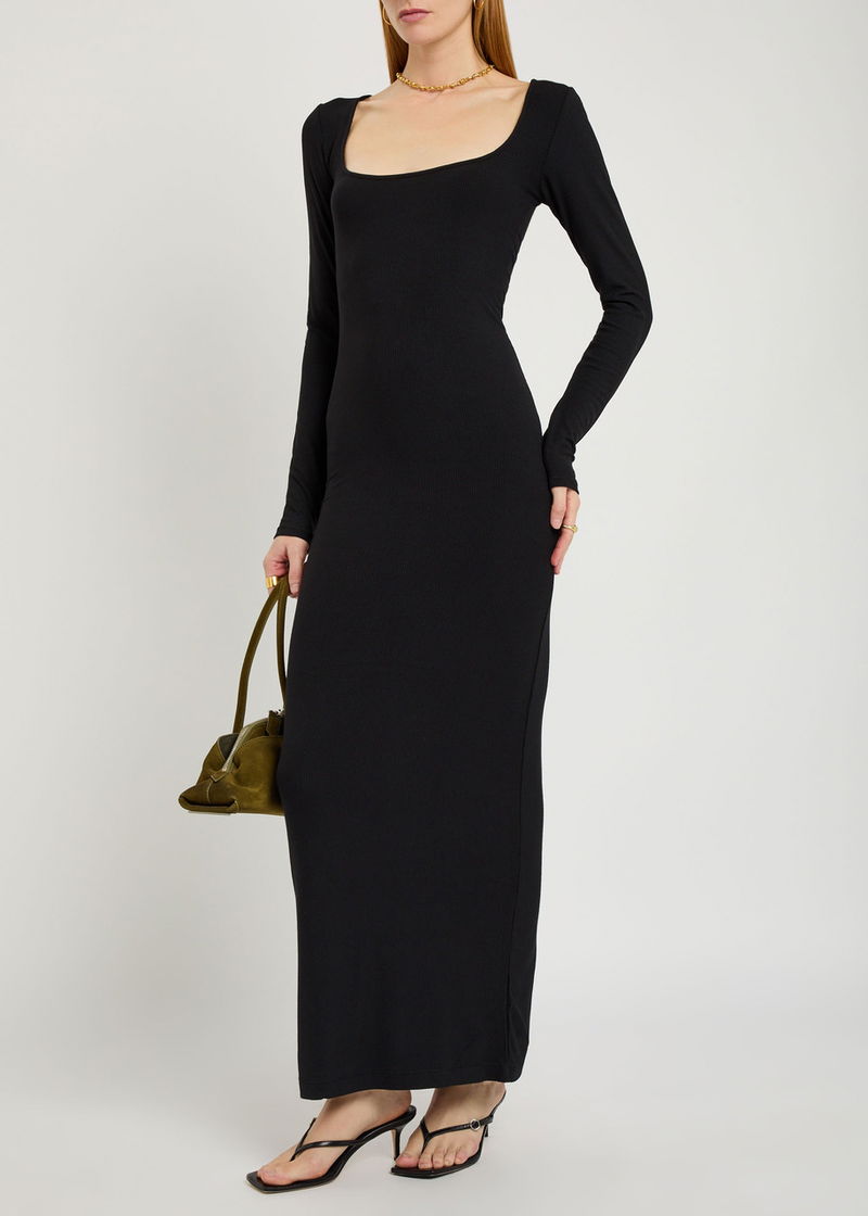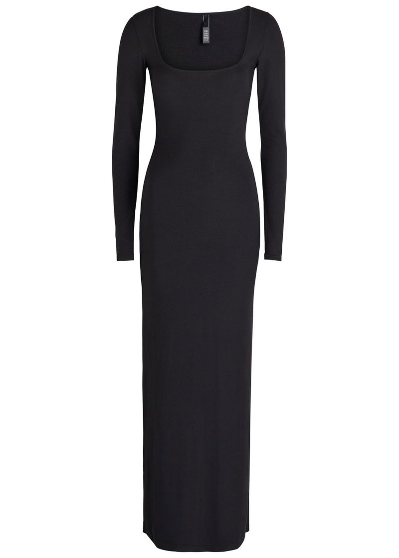The iconic Skims lounge dress but now with sleeves. Embrace every single one of your curves with its slinky silhouette, ultra-flattering square neckline, and drapey long ribbed slip.