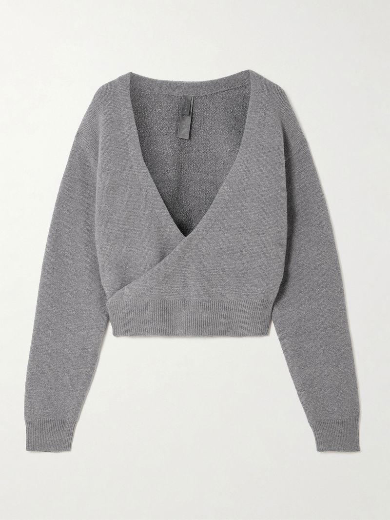 SKIMS' sweater has a wrap front inspired by classic ballet cardigans. It's knitted with touches of cotton and has a close fit with dropped shoulder seams and ribbed trims. Style yours with the coordinating skirt.