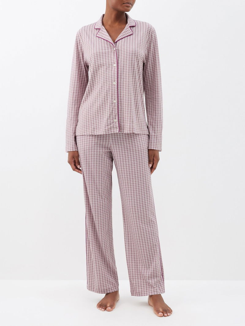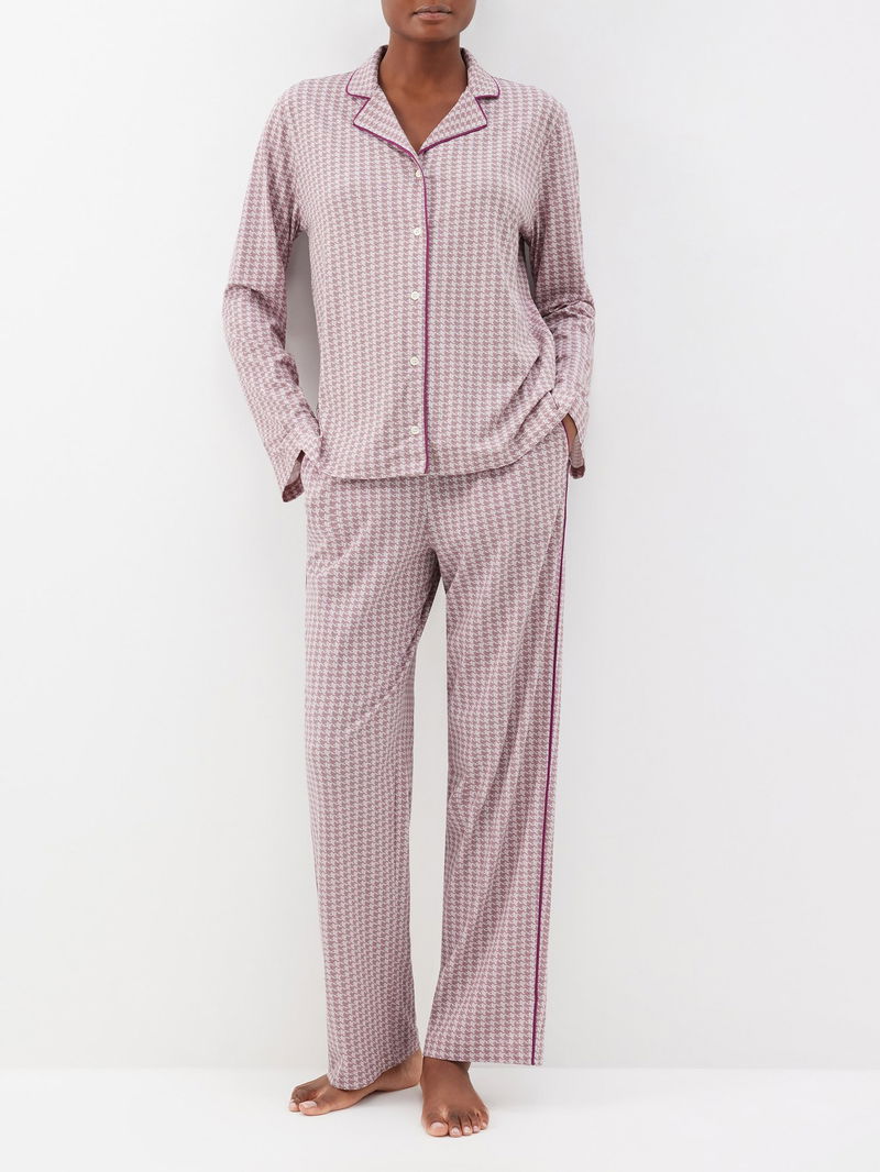 Cayla houndstooth-print organic-cotton pyjamas.