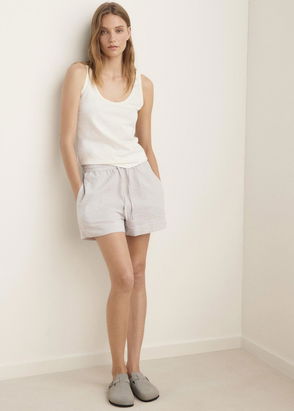 These pastel-hued pyjama shorts from Sleeper are perfect for vacations. Cut from a lightweight linen fabric, they have an elasticated waistband and are trimmed with ruffles at the cuffs.