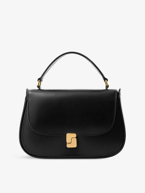 Soeur leather shoulder bag. Snap fastening. Adjustable shoulder strap, flap front, branded hardware at front, one main compartment, internal slip pockets, lined, all-over grained leather, gold-tone hardware.