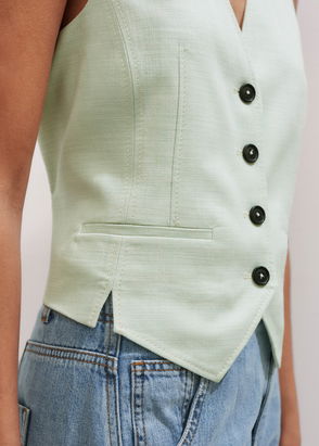 Soeur faux-fur jacket. Button fastening. Regular fit, round-neck, sleeveless, side pockets.