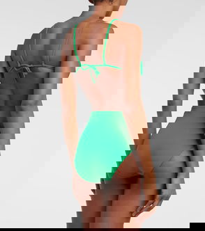 A high-rise waist lends Solid & Striped’s khaki-green The Brigitte bikini briefs a distinctly 1950s-inspired aesthetic. They’re crafted from lightweight jersey that’s quick-drying and feature black and white shadow stripes, mid-cut legs and a metallic logo plaque. Wear them paired with the matching bikini top for a directional getaway look.