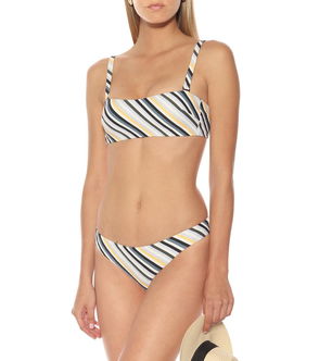 Vivify your warm-weather looks with the bold stripes of Solid & Striped’s multicoloured The Ginger bikini top. Crafted from quick-drying jersey, it’s fashioned with underwired demi cups for a flattering profile and secures with slim halterneck straps. Pair it with the coordinating high-rise briefs for a retro-inflected aesthetic.