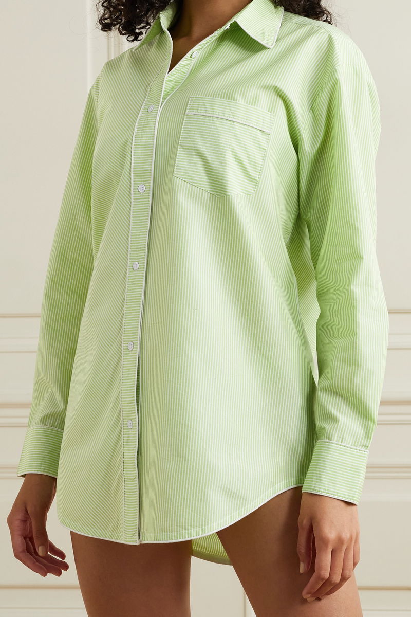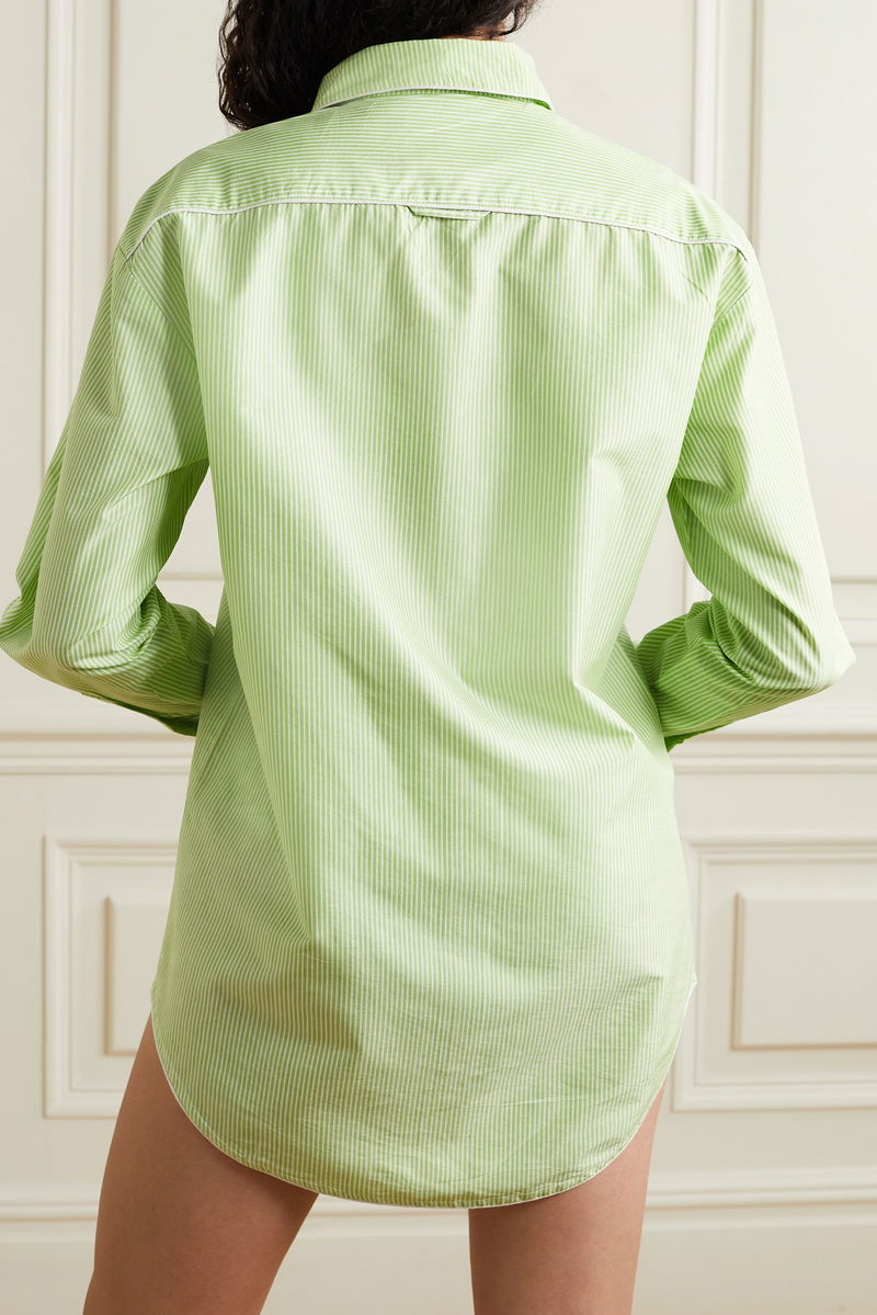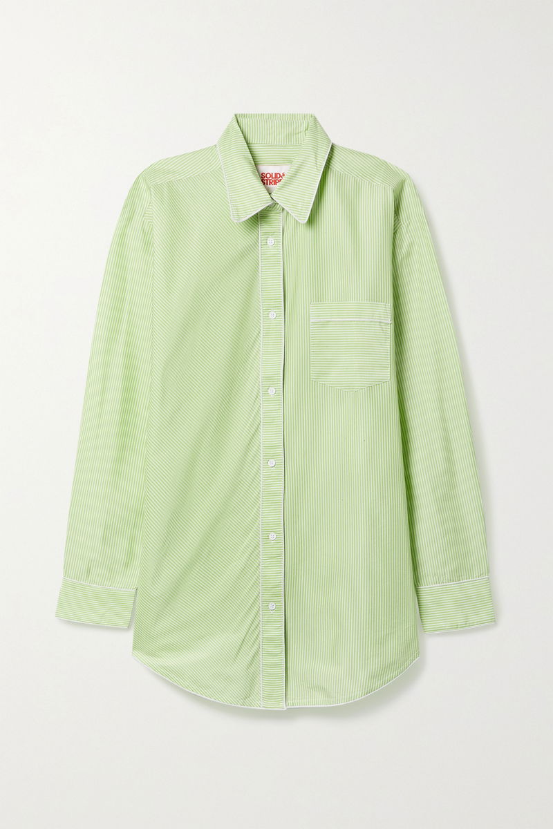 Solid & Striped's shirt is so named after the comfy cotton-blend 'Oxford' material it's made from. It's patterned with 'Pistachio' and white stripes and has classic piping outling the loose shape. Wear yours half-tucked into denim shorts or left open over a swimsuit when heading from the pool to lunch.