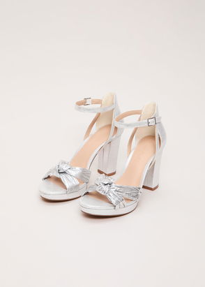Footwear from Souliers Martinez is handcrafted by skilled artisans in workshops on the Spanish coast. Referencing disco styles from the 70's, the Springs sandals are made from gold-tone leather into intricately-knotted front and ankle straps. The retro design is supported by square-toed platforms and flared block heels.