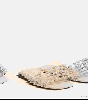 Faux-shearling slippers in beige.· Logo embossed at padded footbed· Faux-suede soleFaux-shearling pouch in beige. · Logo patch at face· Zip closure· Cotton twill lining.