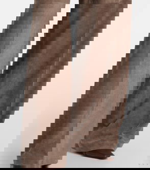 Goatskin suede pants. · Paneled construction · Belt loops · Four-pocket styling · Zip-fly· Patch pocket at outseams · Partial stretch satin lining.