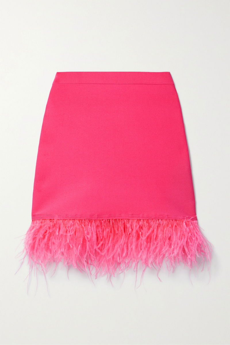 STAUD's 'Chaya' skirt is a fun choice for your next party. Knitted in a 'Shocking Pink' shade, it's designed to hug your figure and has wispy feathers along the mini hemline. Wear yours with the coordinating top and an equally bright bag.