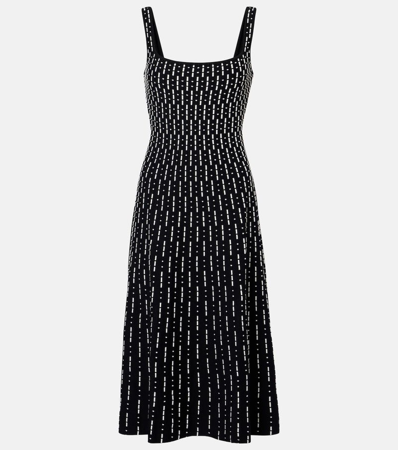 Staud has captured the hearts of many with its playful and uniquely fresh aesthetic. The Ellison midi dress is made from a compact knit to a streamlined silhouette and features a geometric pattern.