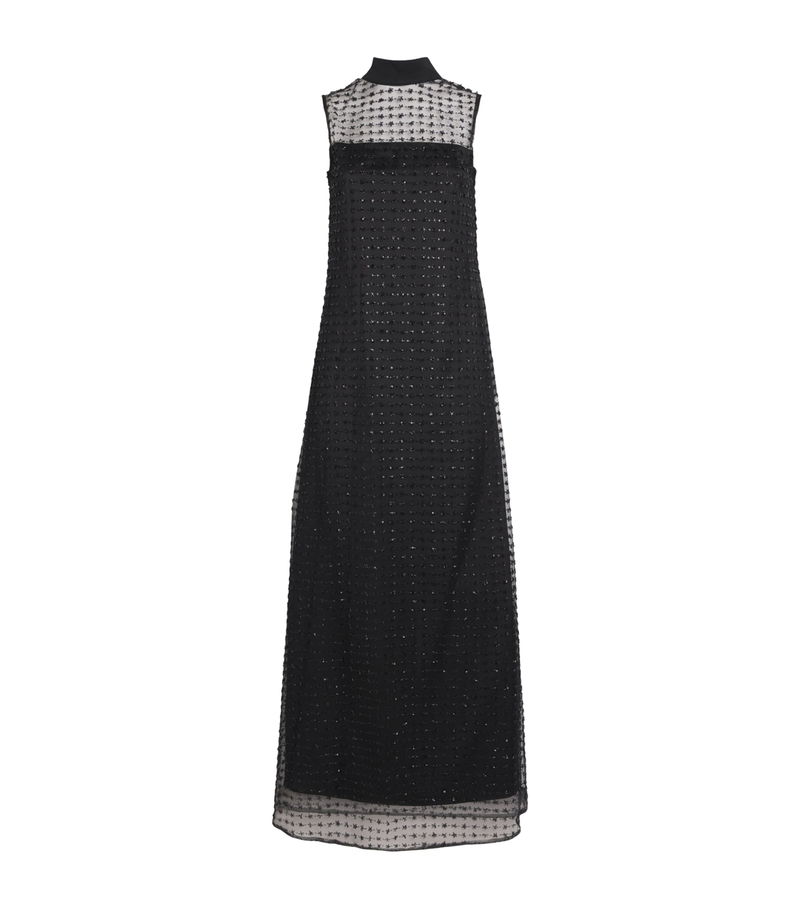 Based in Los Angeles, staud is no stranger to dazzling style, attracting an audience with a taste for modern classics. The Albee maxi dress subtly shines bright in its own right, with its sheer tulle illuminated with a plethora of tonal star-inspired embellishments.