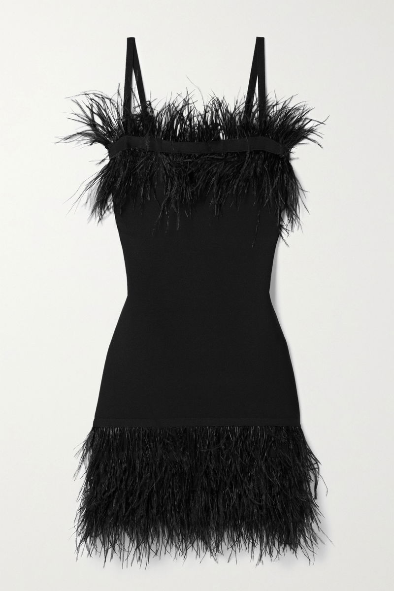 STAUD's take on the little black dress is so fun. It's knitted for a close fit and has tonal, fluttery feather trims. Wear yours with strappy sandals and minimalist jewelry.