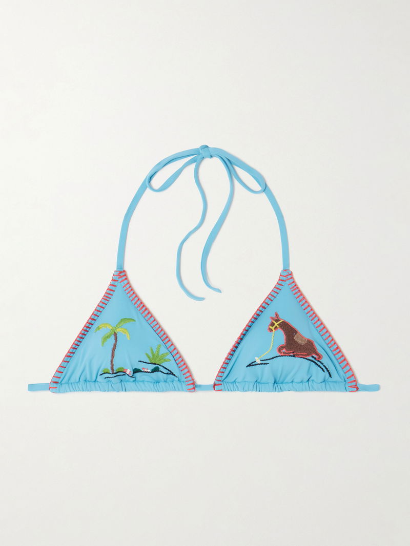 STAUD's 'Lido' triangle bikini top is part of a set with the coordinating 'Sisley' briefs, each adorned with delicate seaside-inspired embroidery. Made from stretch-fabric for a comfortable, unpadded fit, it's designed with a classic halter neckline and adjustable back ties.