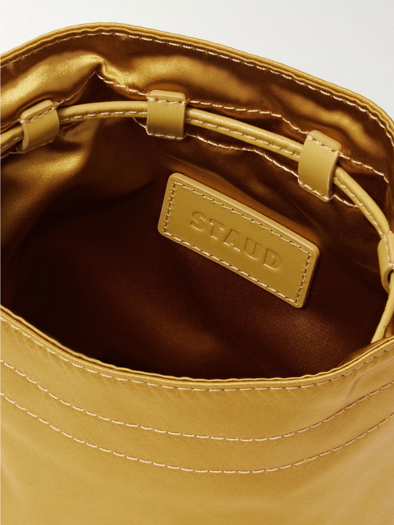 STAUD's 'Lila' bag is such a glamorous companion for nights out. It's made from lustrous satin in a classic bucket shape and has a leather top handle and shoulder strap, so you can go hands-free.