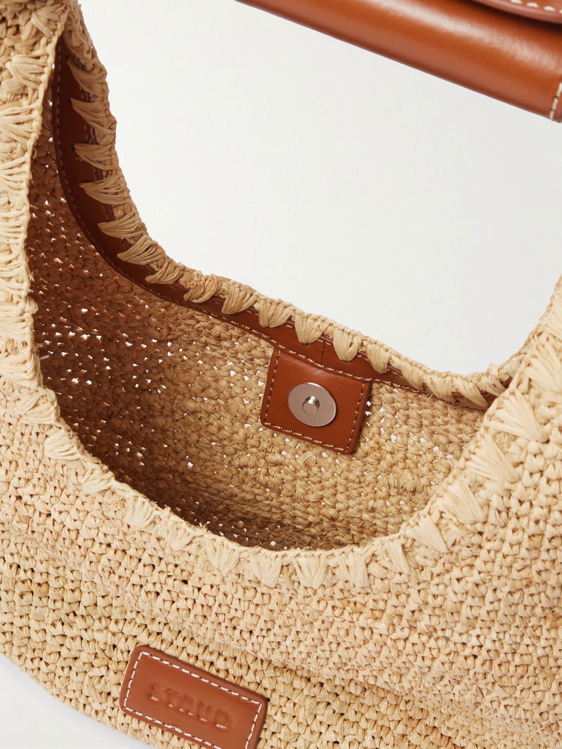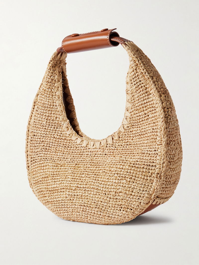 The sculptural shape of STAUD's tote earns its playful 'Moon' namesake. Sized to carry just the essentials (think your phone, cardholder and cosmetic touch-ups), it's woven from raffia with leather trims. The curved handle slips neatly over your arm.
