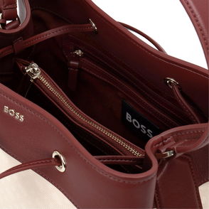 Staud's tan-brown leather Moreau bucket bag is the perfect union of modern finesse and retro-tinted details. It's crafted with a macramé-net overlay and leather top handles, lined with black suede, then finished with contrasting white topstitching for a graphic slant. Swing it alongside a cotton midi dress styled with slingback pumps as part of a casual vacation ensemble.