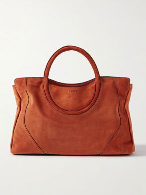 Staud's orange Ollie shoulder bag highlights founder Sarah Staudinger's preference for mood-lifting hues and elegant curvature. It's crafted from glossy crocodile-effect leather with a slim shoulder strap accented by sculpted interlocking gold and silver buckles, then finished with suede lining.