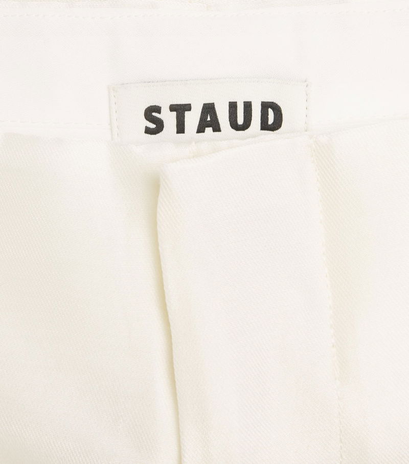 Defined by their lustrous exterior, the Pierre trousers are presented in a wide-leg design and imbued with staud's sense for elevated classics. The pair is cut from a blend rich in wool and silk, while its concealed zipper offers a minimal profile that lends naturally to layered styling.