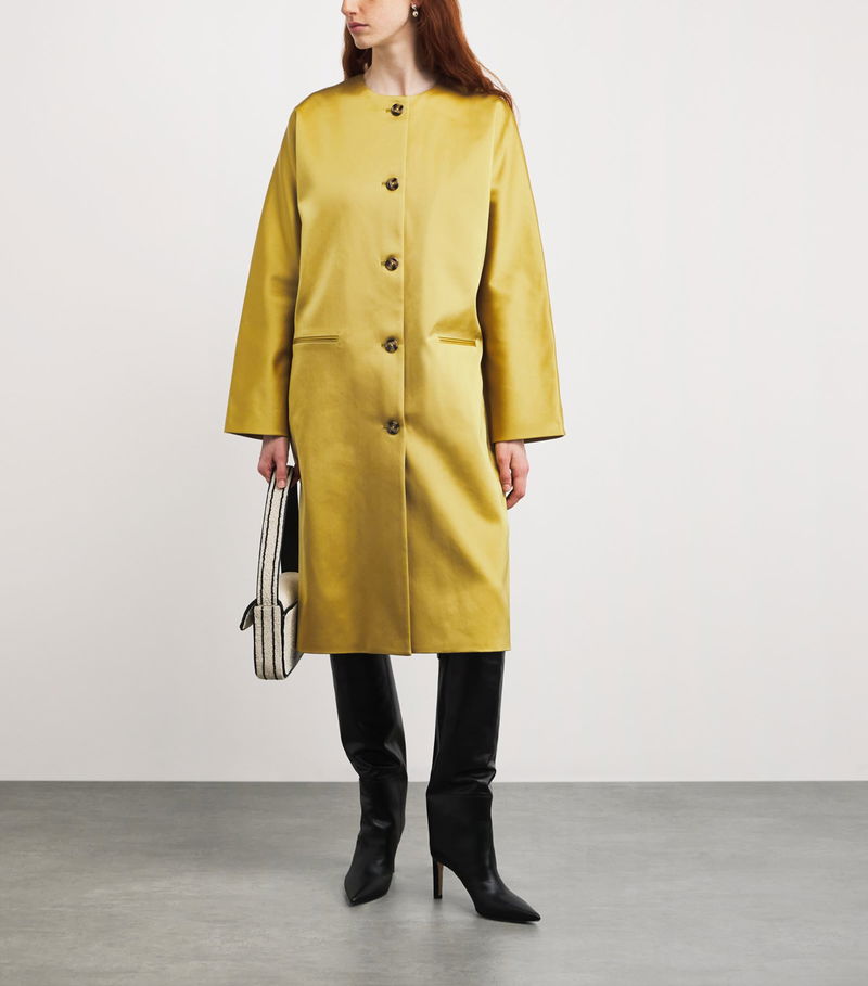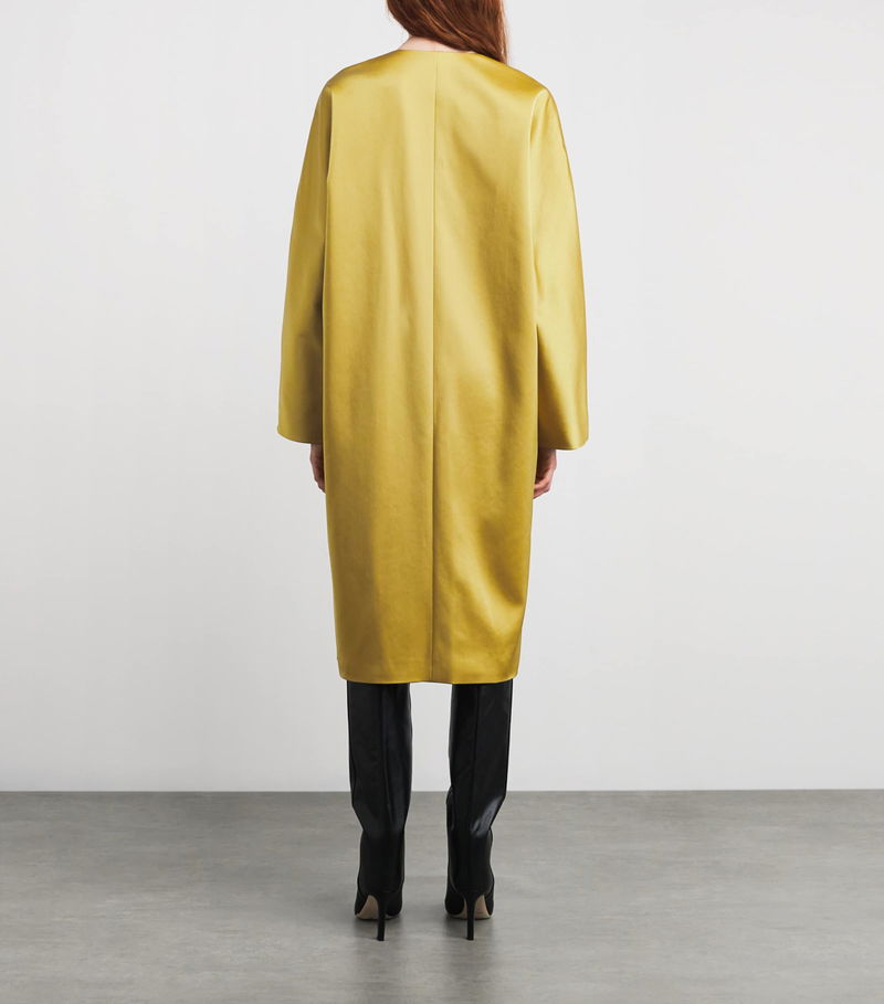 Beloved for its sophisticated offerings, staud takes a turn towards the dramatics with this Liz coat. Cut from duchesse satin, the opera style silhouette features a straight fit, layering sumptuously over your evening ensemble of choice.