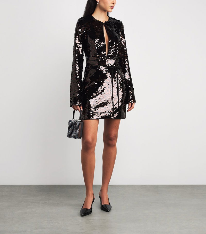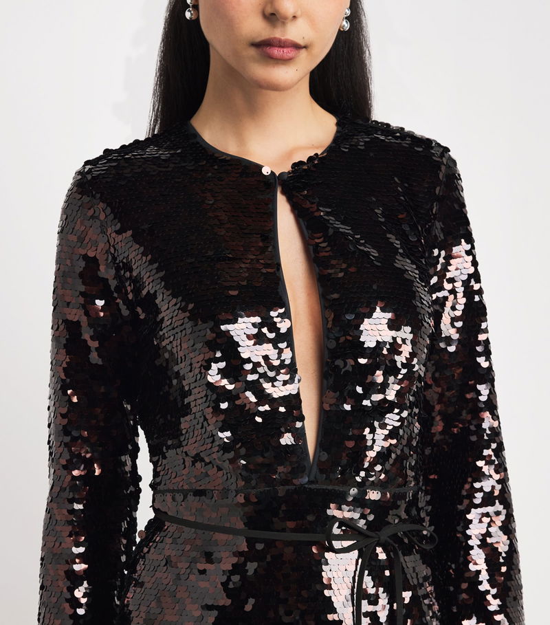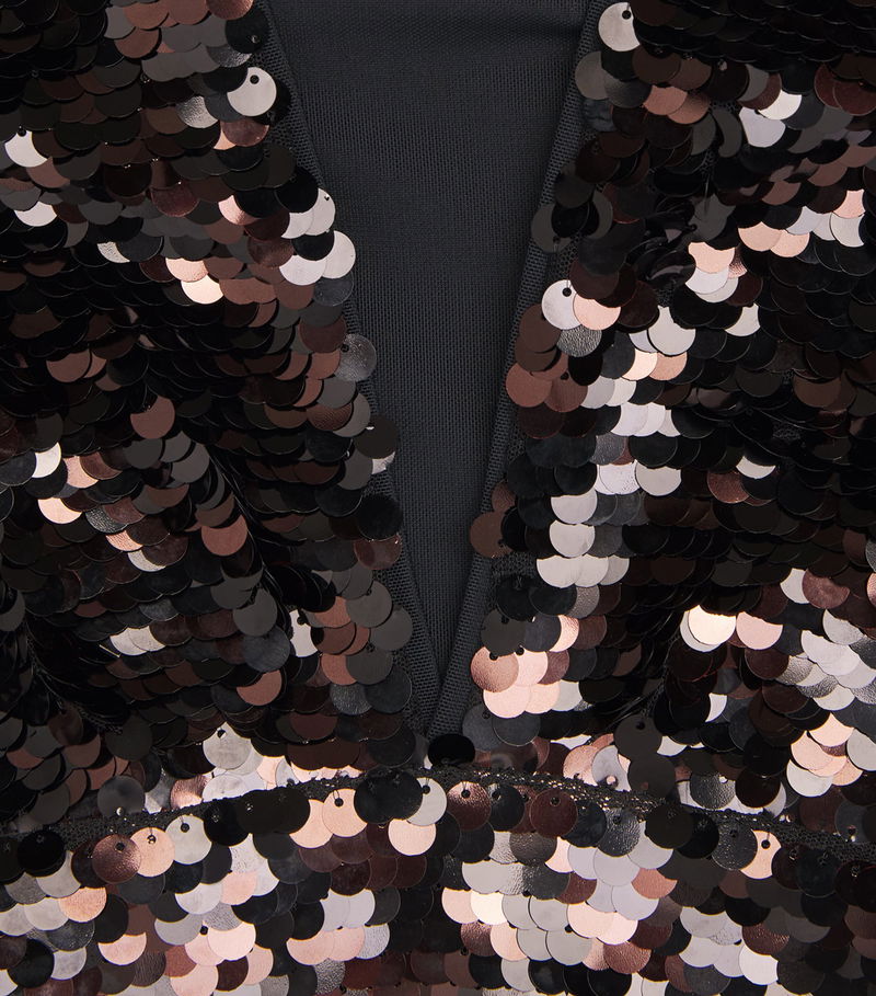 Featuring a centre front keyhole for a sleek flash of skin, this piece is completely adorned with sequins, offering a sense of dazzle with each movement.