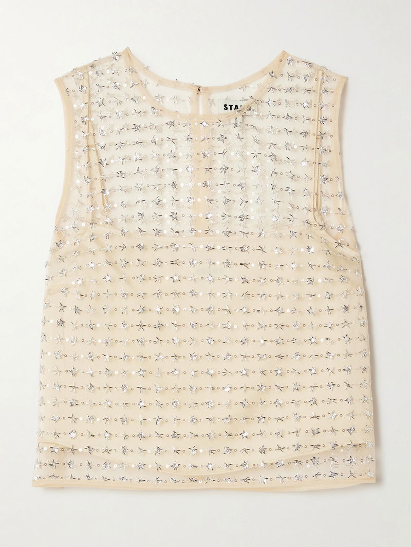 STAUD's 'Seraphina' top is covered with hundreds of beads and sequins that'll sparkle in all directions. It's cut from tulle for a loose, slightly cropped fit and has a tonal lining for coverage. Wear yours to parties with denim or the matching 'Ciara' skirt.