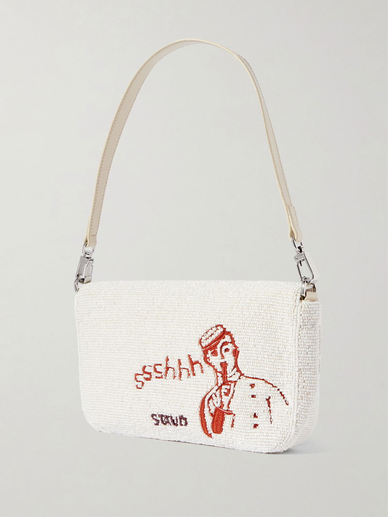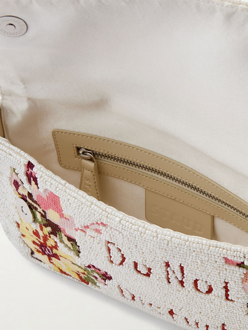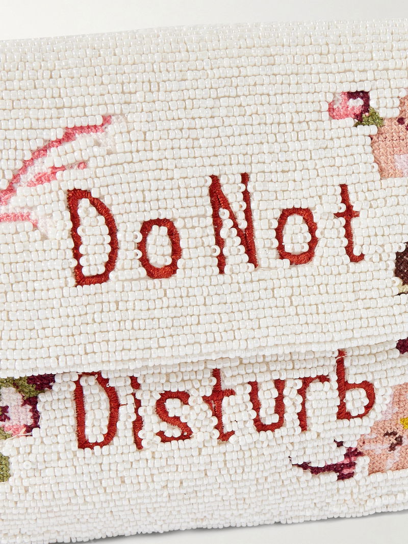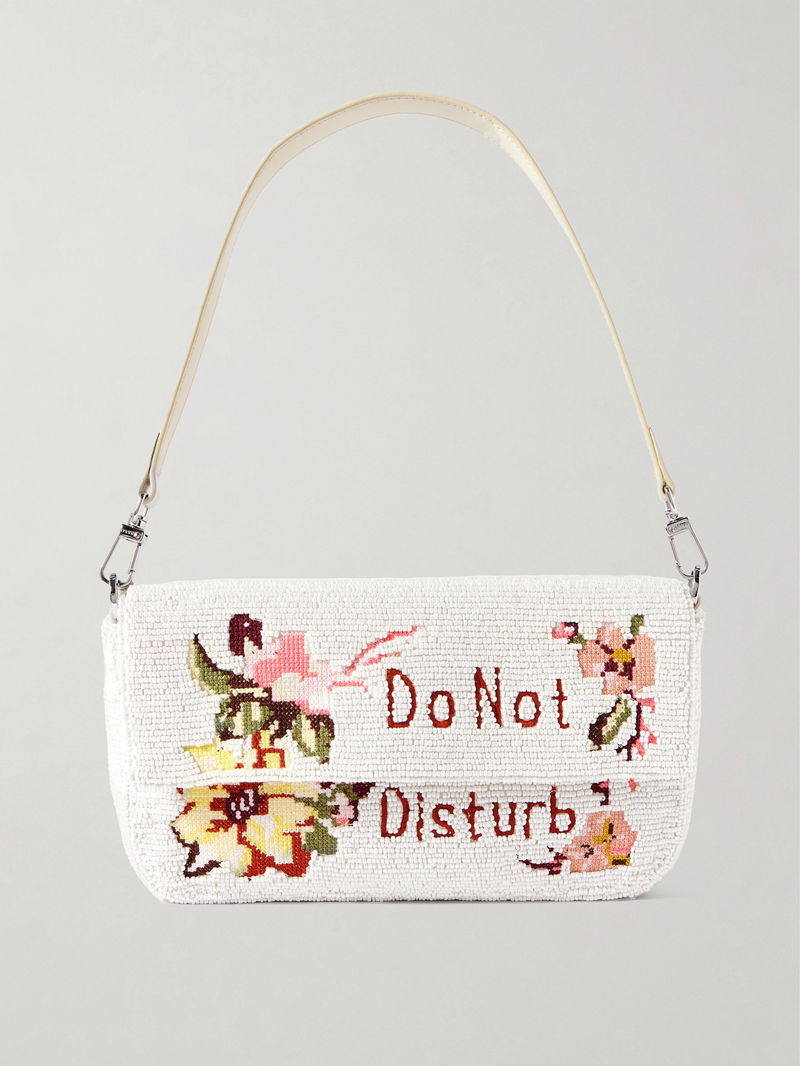 Embroidered with bold 'Do Not Disturb' lettering, STAUD's 'Timmy' shoulder bag is inspired by hotel signs. Made from satin, it's saturated with all-over beadwork and has a detachable strap to double up as a clutch. Slot your cardholder into the zipped pocket.