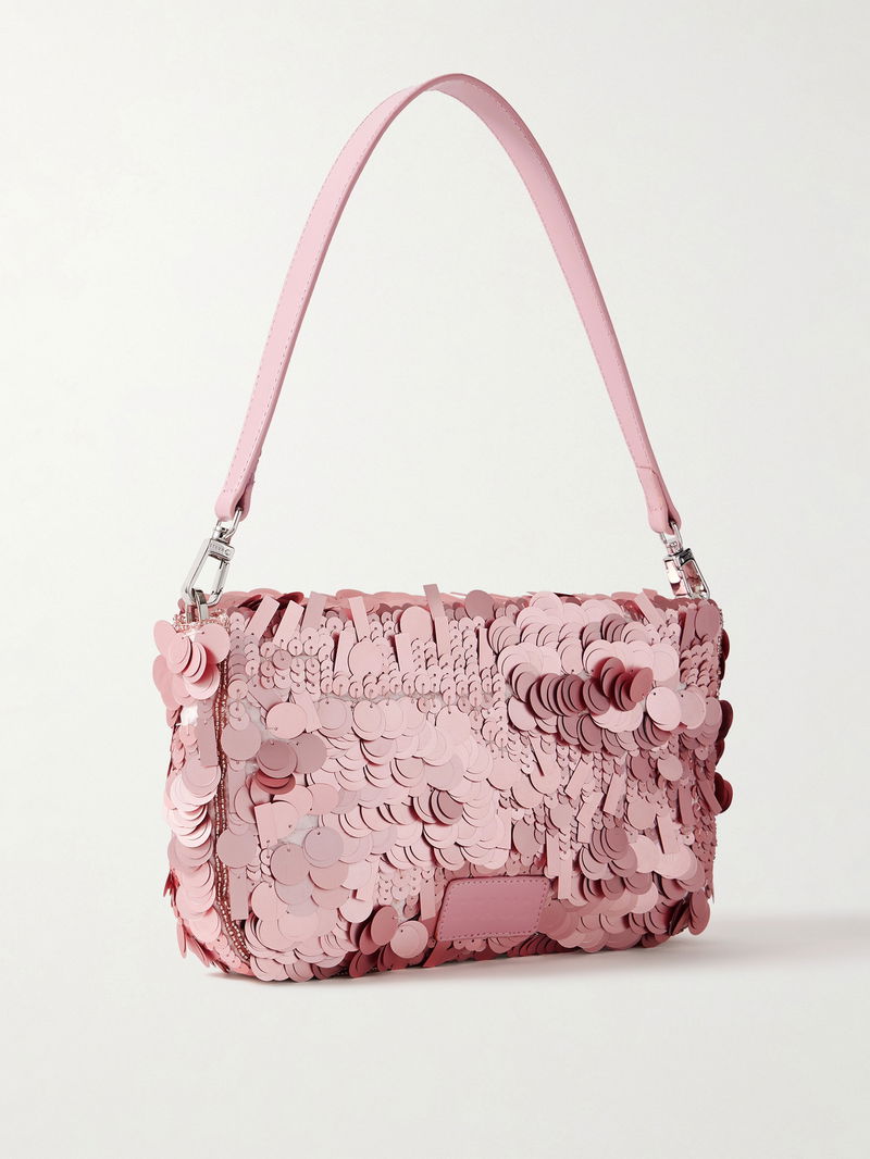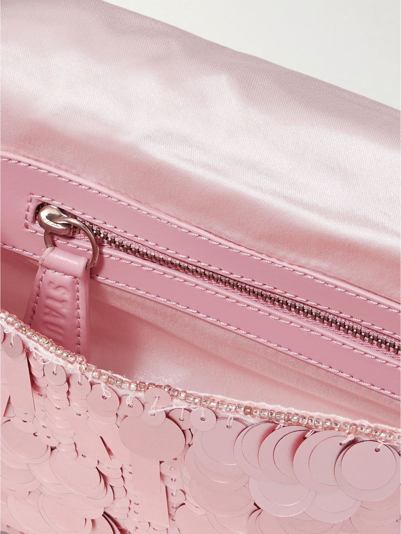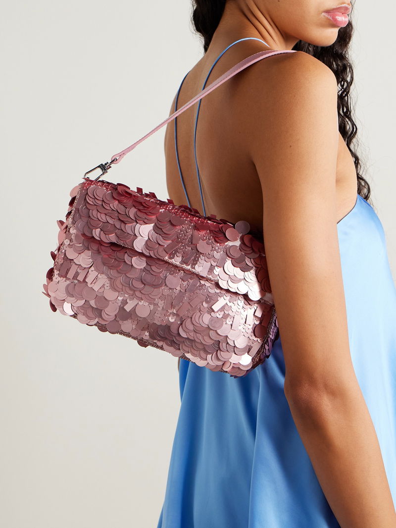 STAUD’s 'Timmy' bag is a perfect blend of artistry and texture. It's covered with oversized, light-catching sequins and has a detachable leather strap so you can carry it as a clutch.