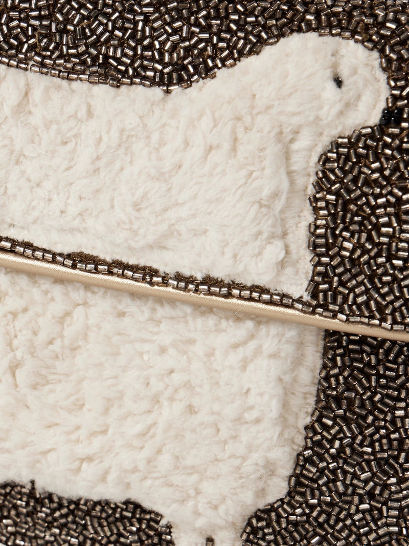 Tommy Fleece-trimmed Beaded Satin Shoulder Bag
