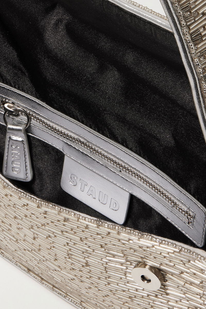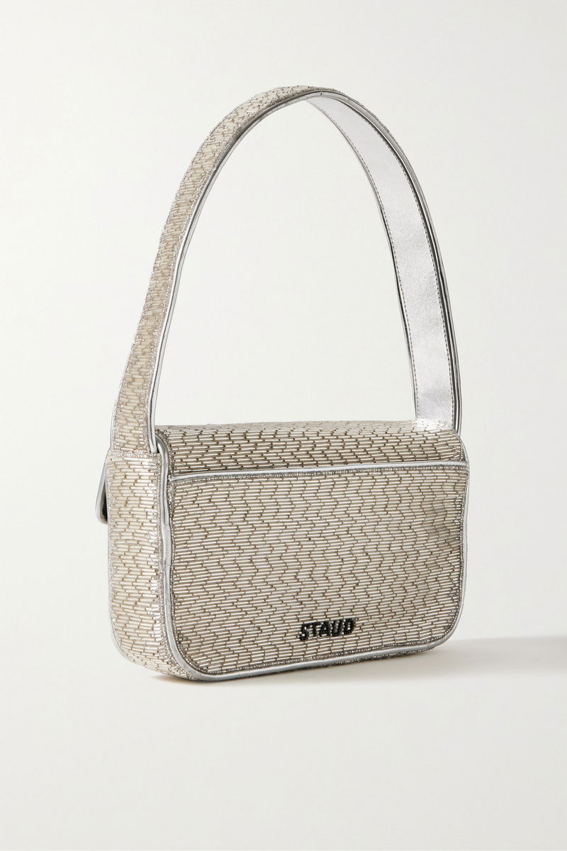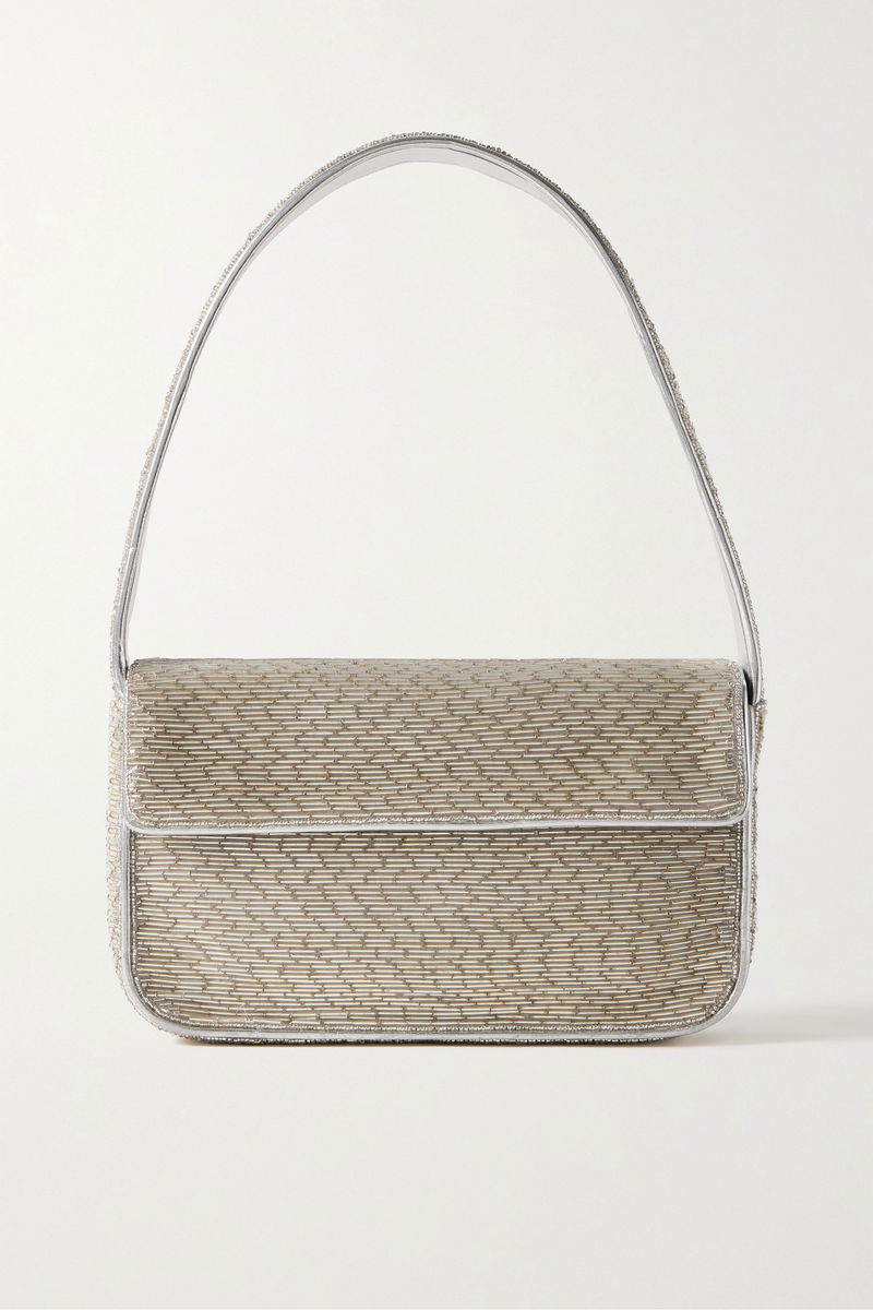 Staud's Sarah Staudinger is never one to shy away from bold accessories, and this 'Tommy' bag is a prime example of that. This version is embellished with gold beads - including black ones that spell out the brand's moniker - and has metallic leather trims. The interior has enough space for your essentials.