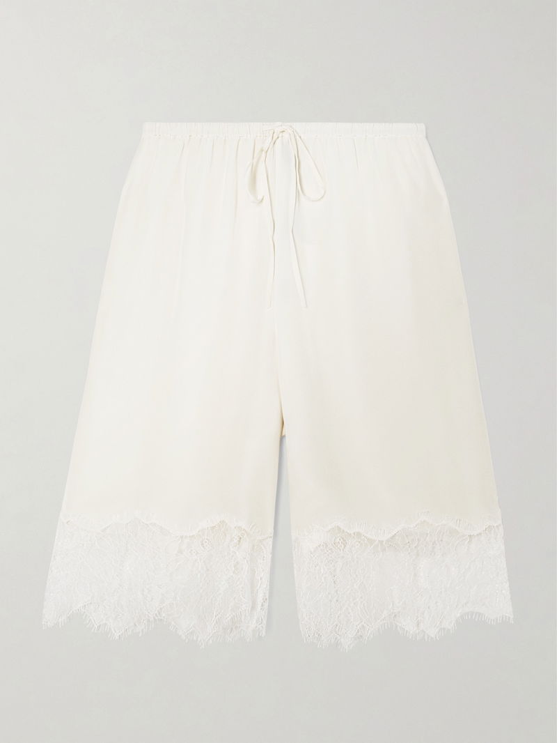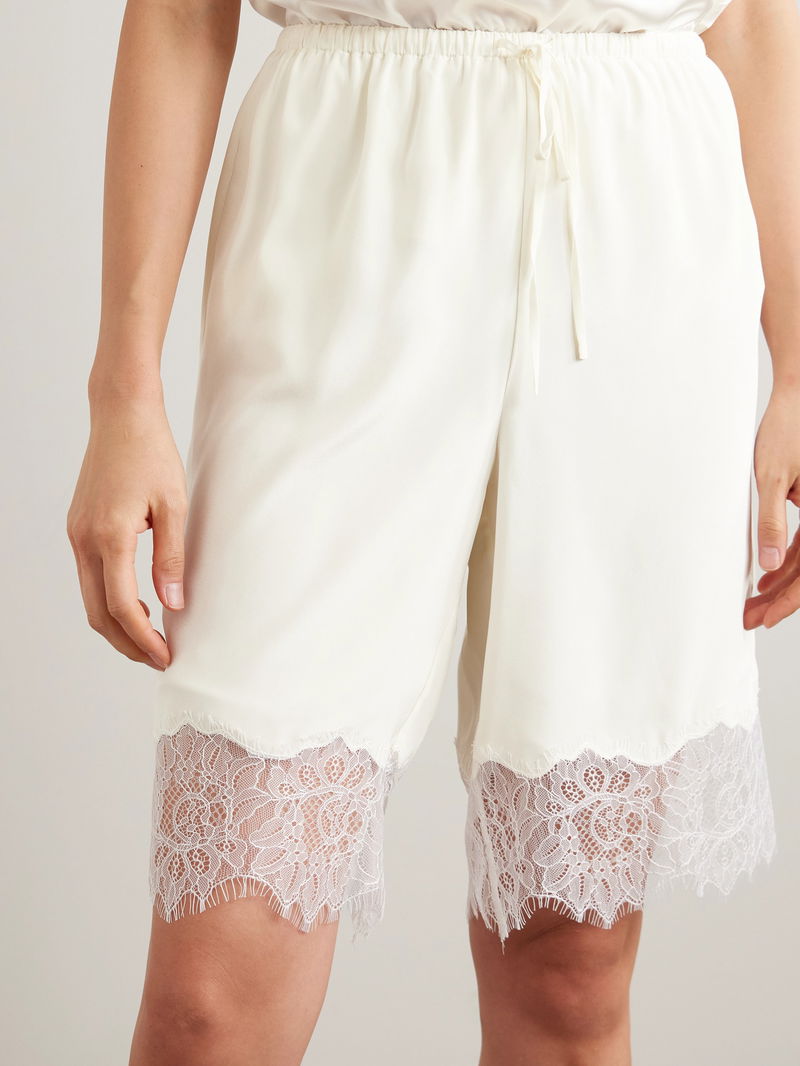 STAUD's 'Verano' shorts strike the perfect balance between ease and elegance. Cut from silk, they fall to loose legs and are trimmed with lingerie-inspired scalloped lace. Style them with the matching 'Chloe' camisole and sandals for a chic, understated look.