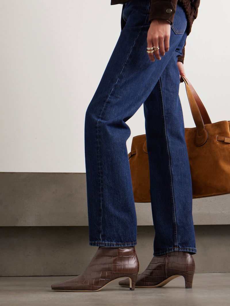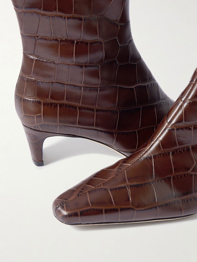 Modernist silhouettes are what set STAUD's designs apart. These 'Wally' ankle boots are made from croc-effect leather and have sculptural heels.