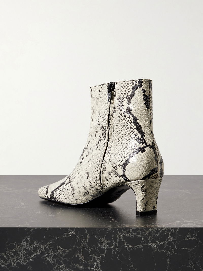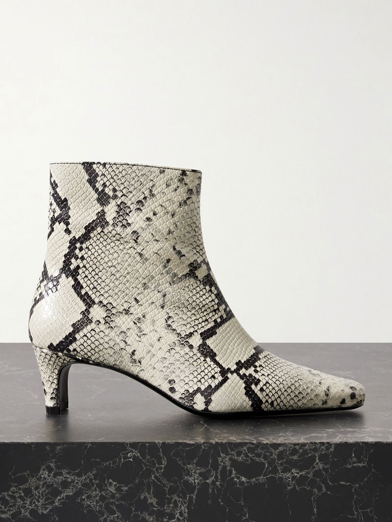 Modernist silhouettes are what sets STAUD's designs apart. These 'Wally' ankle boots are made from snake-effect leather with sculptural heels. The point-toe shape looks just as chic with jeans as it does a midi dress.