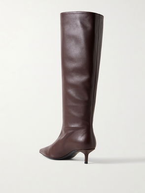STAUD's 'Wally' knee boots are made from soft tan suede in a slouchy silhouette that bunches slightly at the ankle. They have pointed toes and slim 45mm heels.