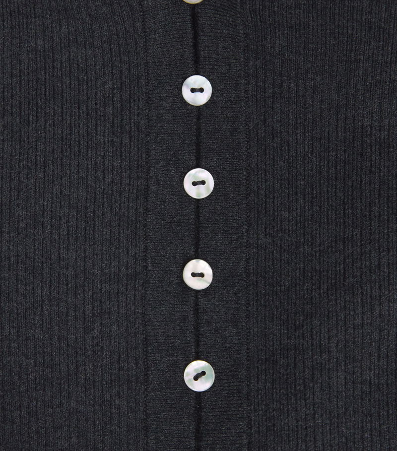 Asymmetric lines have long been a staud signature, illustrating a love affair with avant-garde detailing and unconventional silhouettes. The Keaton cardigan offers a softened take on the hallmark, defined by an off-the-shoulder neckline embellished around the perimeter with mother-of-pearl buttons and a soft ribbed knit.