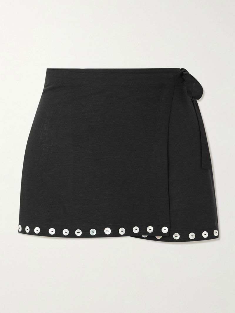 STAUD's 'Zandra' pareo is the perfect addition to any summer-ready bikini or swimsuit. Made from linen-blend, it's defined by a lustrous button-adorned mini hem with a low coverage self-tie to one side.