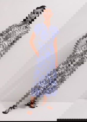 Brand new with tags, multicolour midi dress with drape detail, long sleeves and back zip fastening.