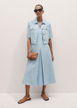 Stella McCartney's dress is modeled on classic tailoring. Cut from organic cotton-poplin in a timeless sky-blue, it has button-fastening cuffs and falls to an asymmetric hem. The knee length is perfect for pairing with knee boots.