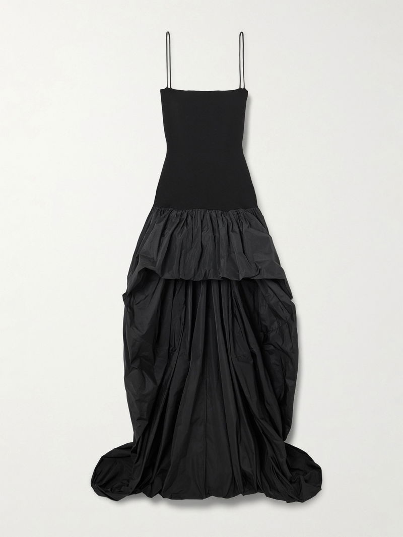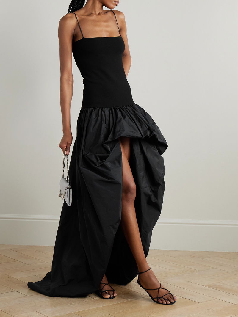 Ensure a stunning entrance at your next event with Stella McCartney's gown. Made from crepe-jersey, it fits close through the bodice and dropped waist before flaring out to a voluminous taffeta skirt. Complement the leg-baring split with heels.