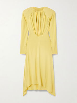 Stella McCartney's dress is a sophisticated choice for special occasions. It's made from rich navy crepe and has a cape-effect overlay that creates beautiful movement with each step you take. Keep your jewelry minimal - think gold hoops and a simple necklace.