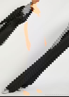 Stella McCartney's gown has a flowing cape-effect overlay that's traced with glittering bezel-set crystals. It's made from fluid crepe with a subtle sheen and has a loose, breezy shape. Keep makeup on the natural side, opting for full lashes, a touch of blush and swipe of dewy highlighter along your cheekbones.