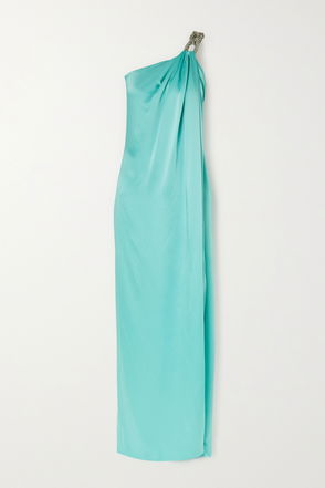 Our rule for eveningwear? Forget half measures. Choose something spectacular that makes you feel the best version of yourself. Stella McCartney's gown is expertly made from smooth cady blended with 51% certified viscose and has a trail of glistening crystals at the cutout waist and coordinating neckline.