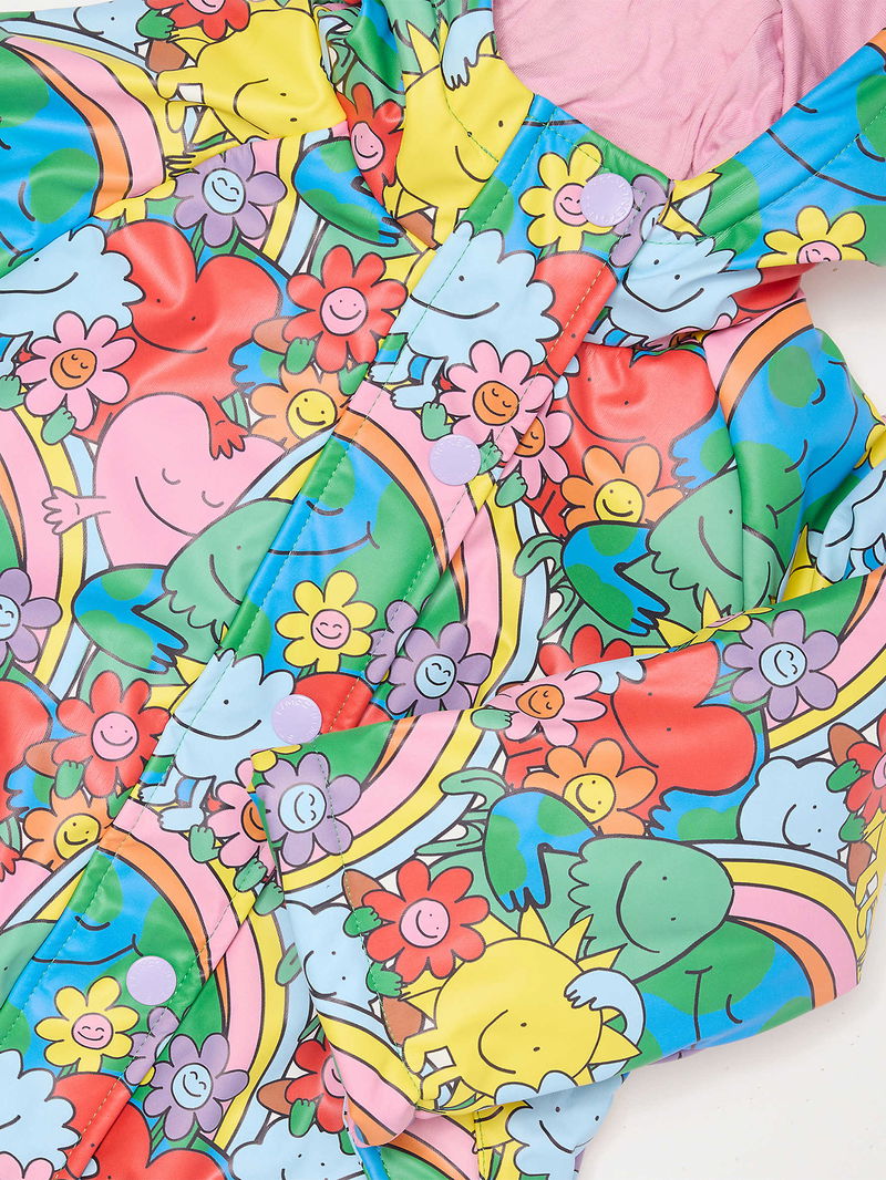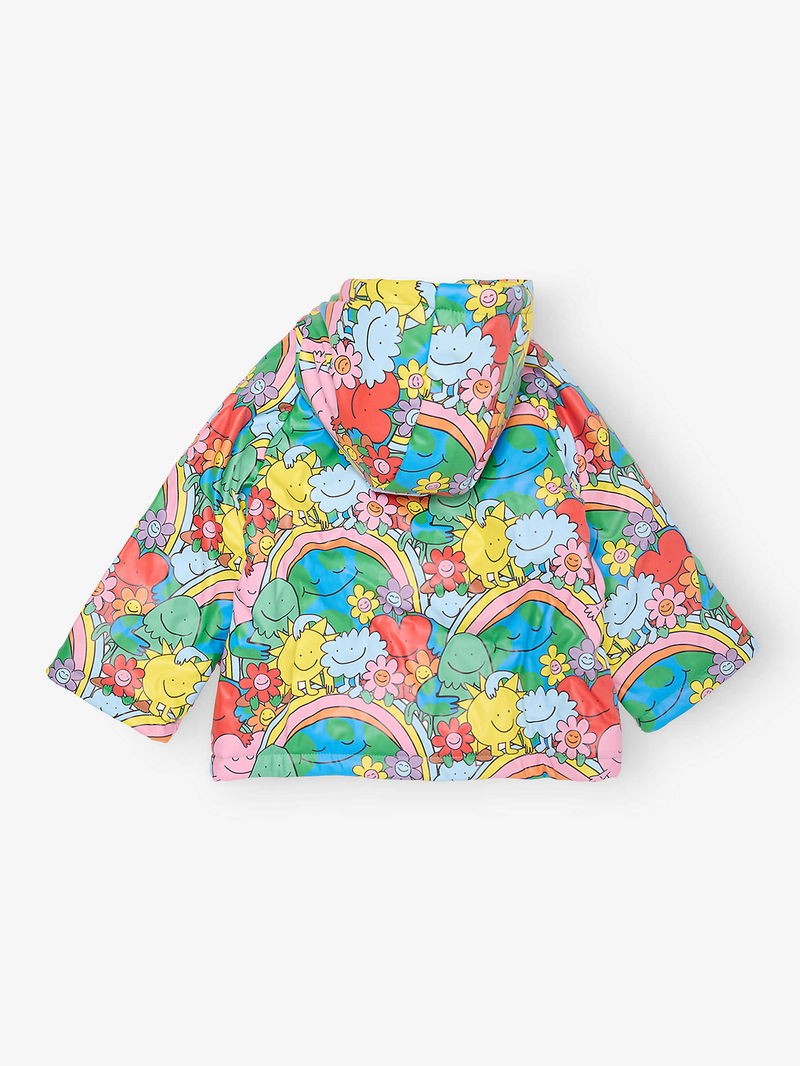Stella McCartney waterproof parka jacket. Concealed zip fastening with exposed branded press-stud. Hooded, long sleeves, two slip pockets at front, all-over graphic print design