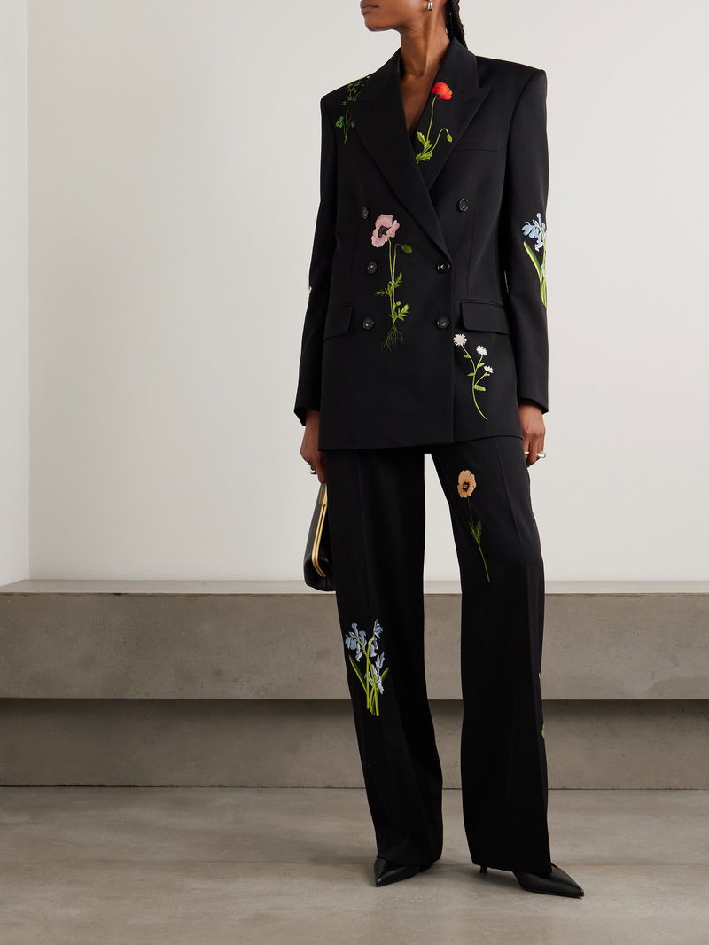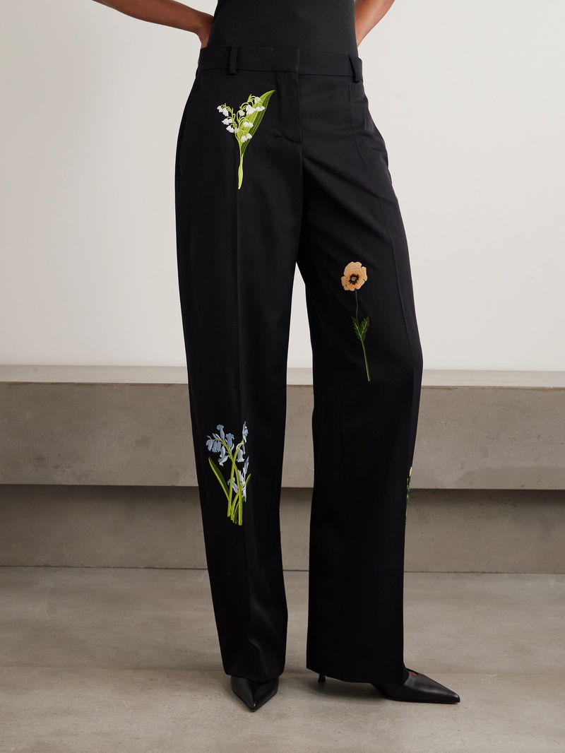 Stella McCartney's pants are charmingly strewn with flowers, each delicately embroidered. They're tailored in a timeless wide-leg fit from wool-twill that drapes effortlessly. Style yours with the matching jacket in our edit.